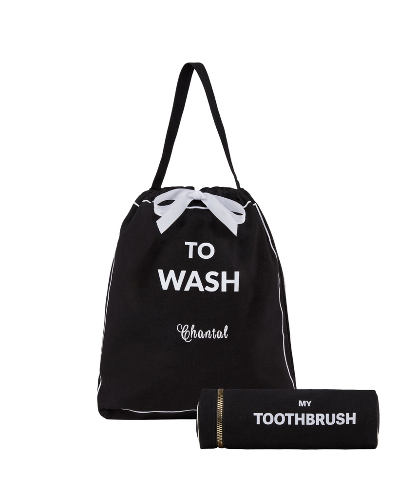 Black Personalized Makeup Bag with bow embellishment