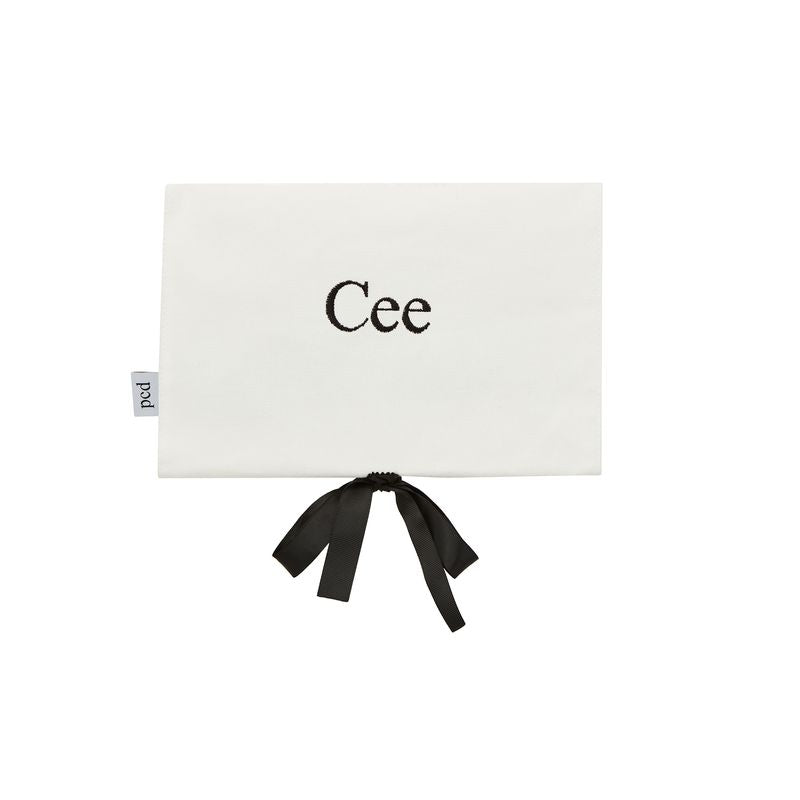 The fold-over design secures with a sleek black ribbon tie, adding a touch of sophistication while keeping everything neatly in place. Lightweight, compact and stylish, it slips effortlessly into your handbag or luggage — making it the ideal companion for travel, weekends away or everyday organisation.